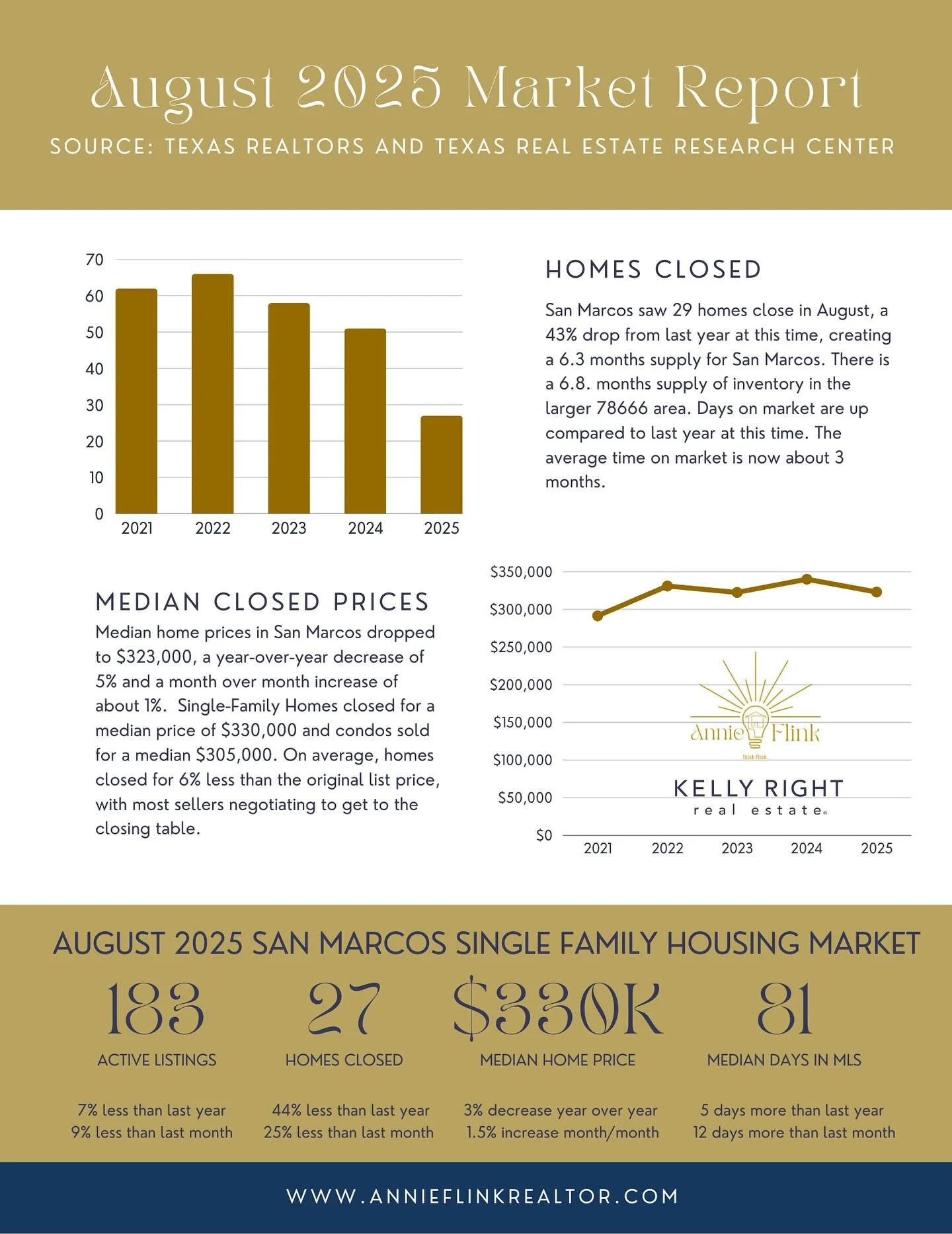 On average, San Marcos homes are closing about 7% below list price. Once under contract, buyers aren’t afraid to walk away during the option period if their inspection turns up issues- they know more homes are out there. So it’s easier to negotiate again during the option period. I’ve seen deals where buyers negotiated for seller concessions to buy down interest rates, cover repairs, or throw in appliances. These extras can make a big difference in affordability.